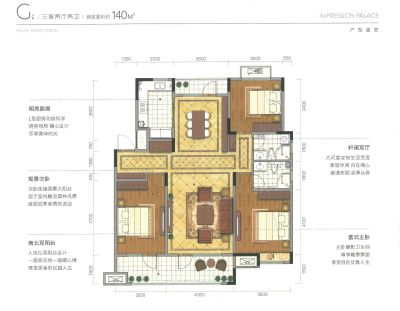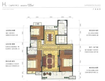 ①户型方正,南北通透,通风采光良好,明厨明卫,客厅采用大面积落地推拉门窗,卧室采用约270度 采光飘窗的形式,南北双阳台设计。 ②封闭式小区,完全人车分流。