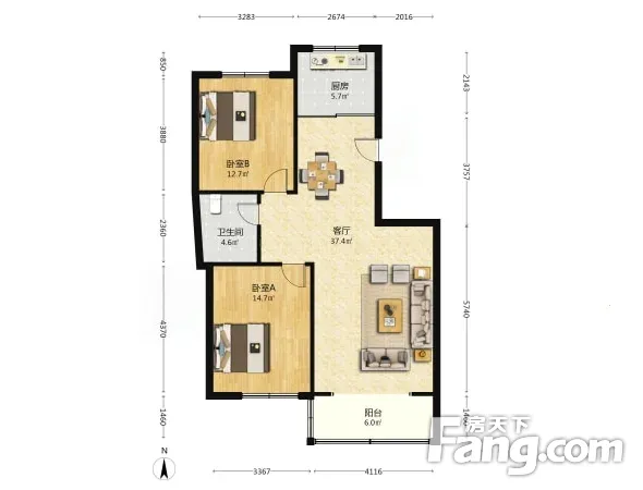户型齐全,主打客厅朝南,双卧朝南二居