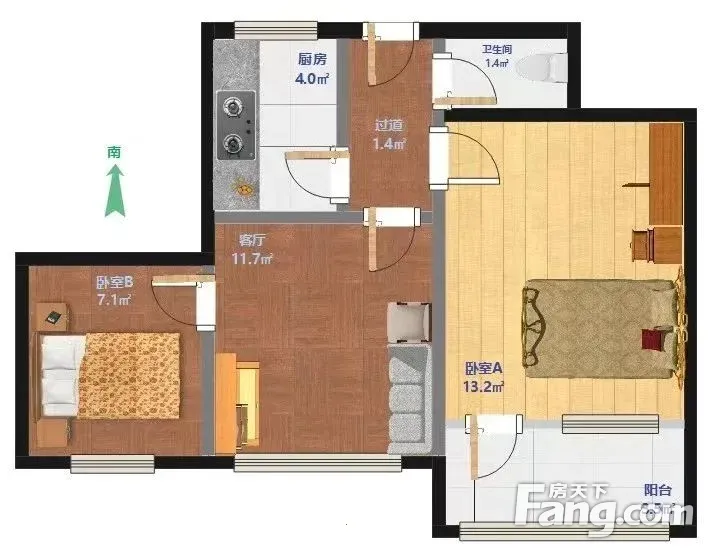 户型齐全,主打明卫,双卧朝南二居