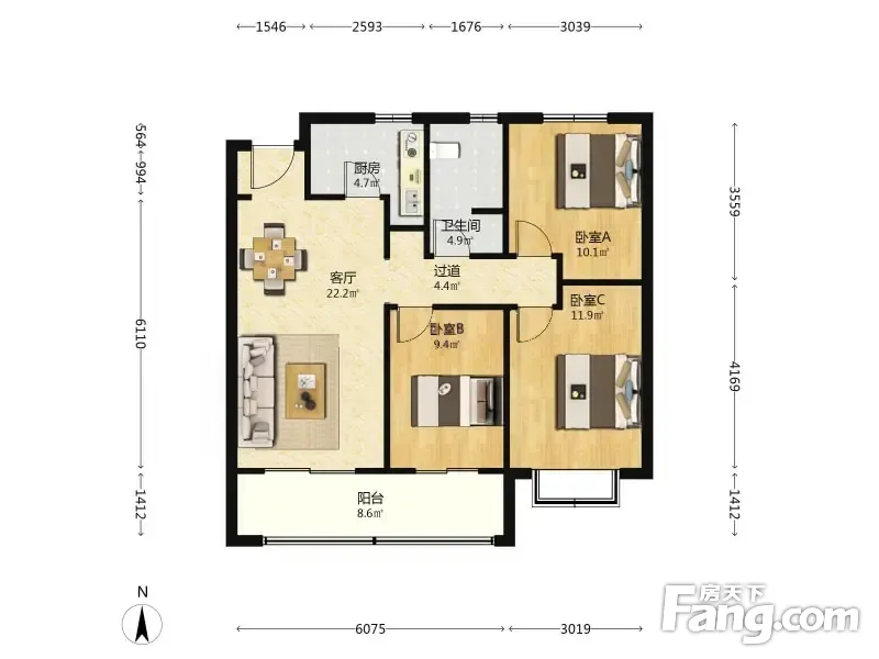 银盛泰香江学府 3室2厅 99.77平