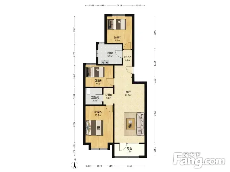 金隅和府毓和府 3室1厅 107.34平