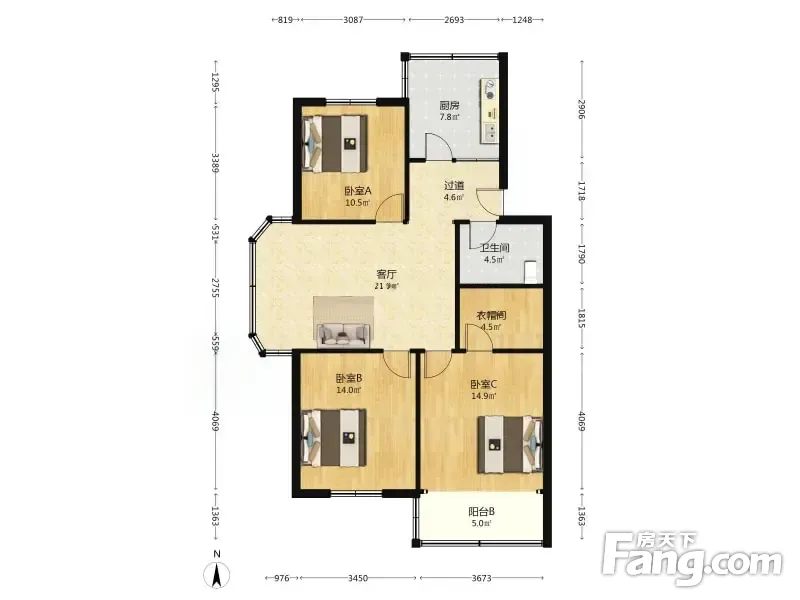 青岛中房云溪小区D 3室1厅 107.32平
