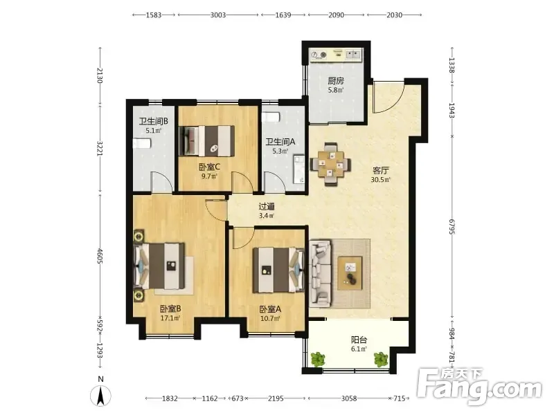 户型齐全,主打南北通透,全明格局三居