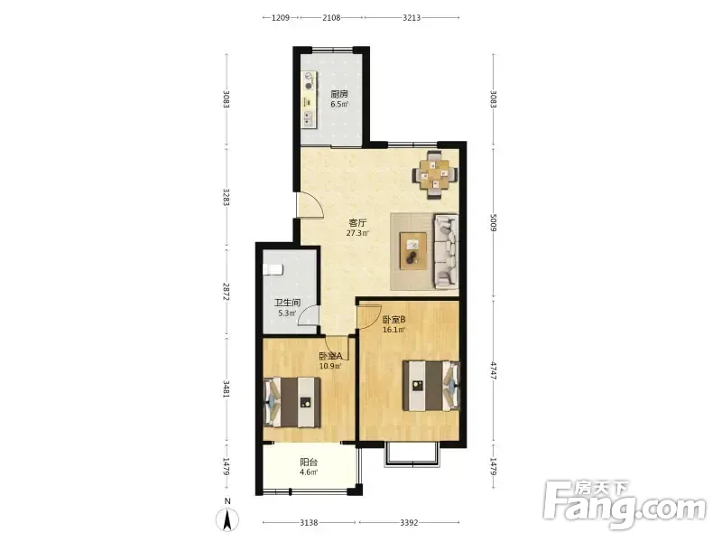 户型齐全,主打户型方正,明厨,客厅朝南,主卧朝南二居
