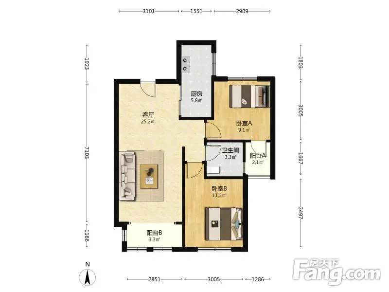 上臧家园 2室1厅 93.81平