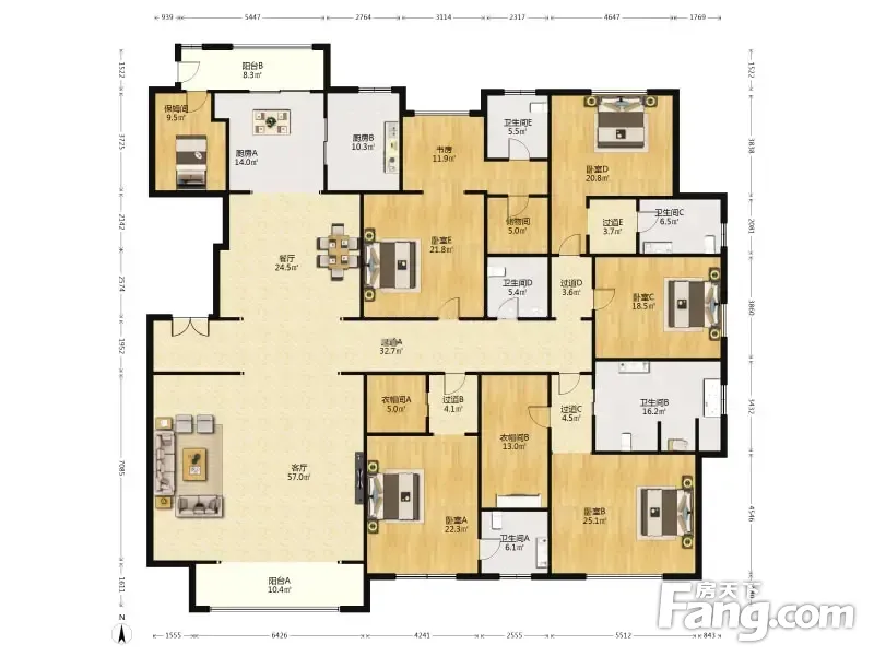 房屋拥有相对宽松的尺寸,布局通透,动静分离,设计豪华
