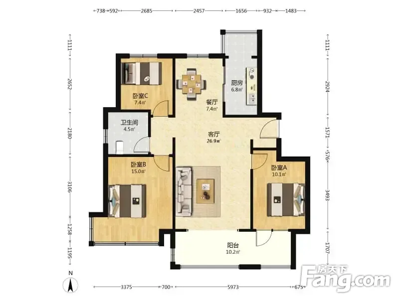 户型齐全,主打南北通透,全明格局三居