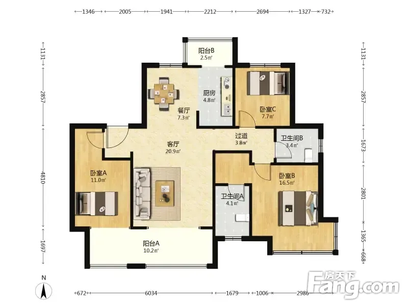户型齐全,主打南北通透,全明格局三居