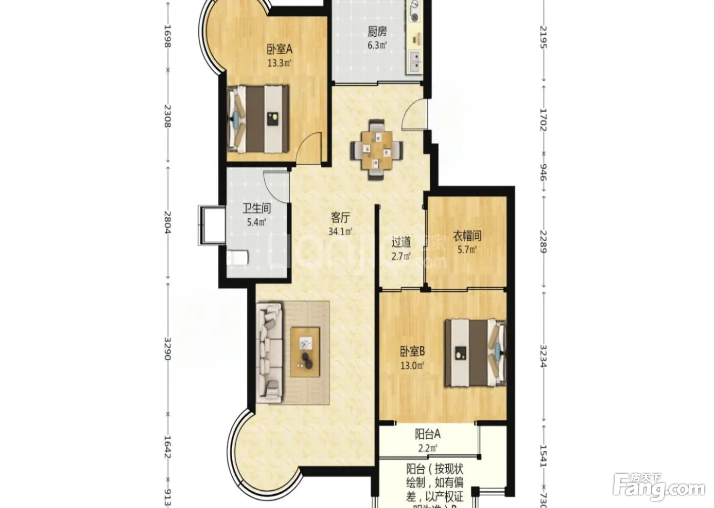 户型齐全,主打户型方正,明厨,主卧朝南二居
