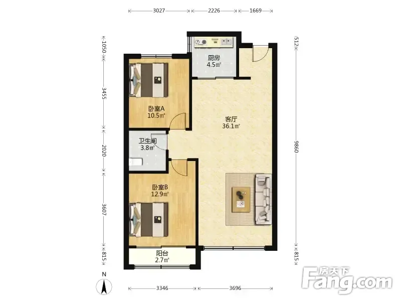 凯景花园 2室2厅 95.06平