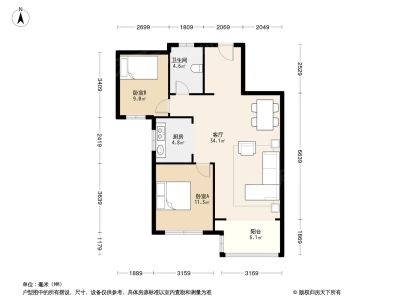 月亮湾 2室1厅 98.54平
