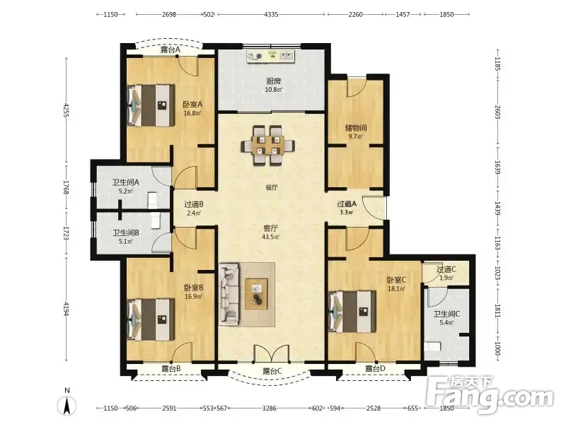 鲁信随珠花园户型主要有151平-180平的厨卫不对门,客厅朝南,主卧朝南,全明格局的三居 。