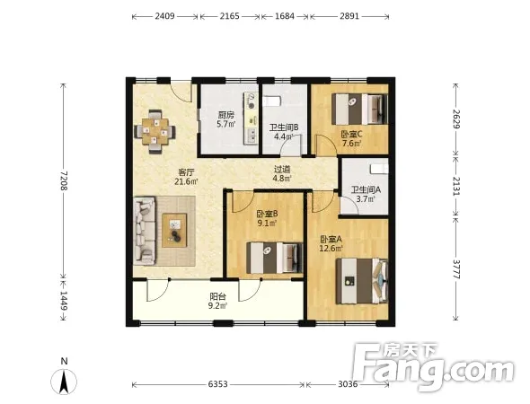 户型齐全,主打南北通透,户型方正三居