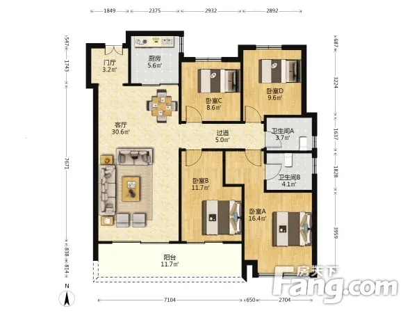 户型齐全,主打南北通透,全明格局四居