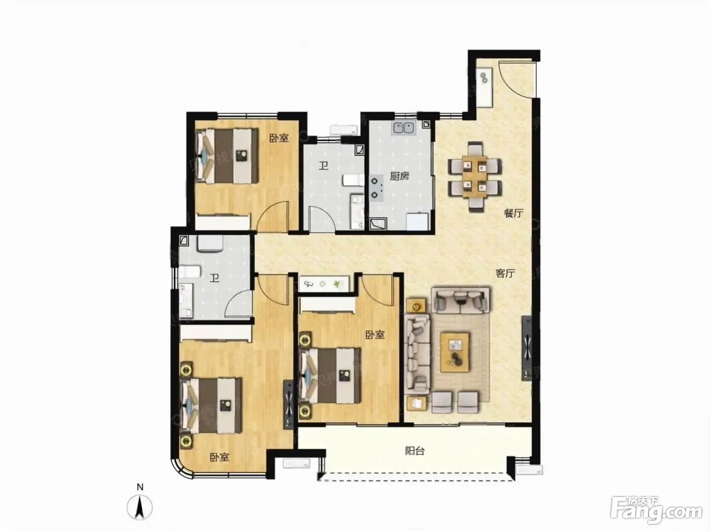 户型齐全,主打南北通透,客厅朝南四居