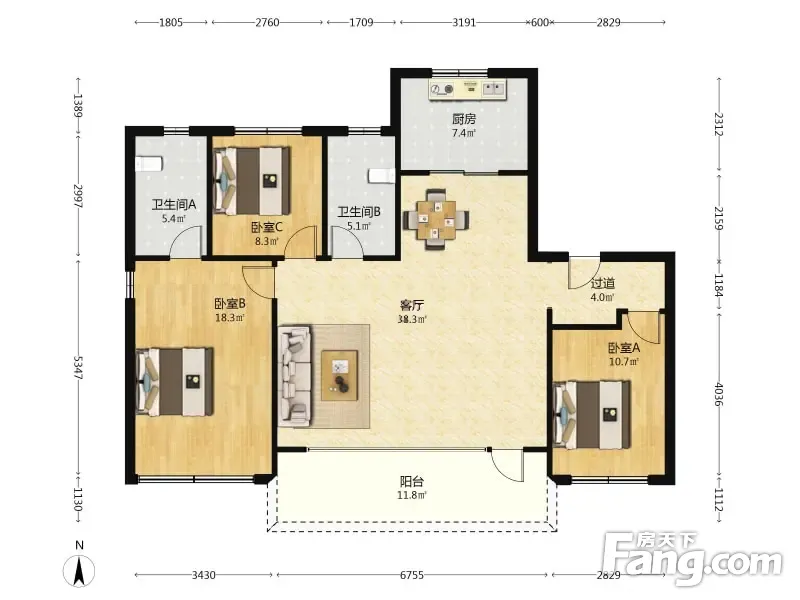 户型齐全,主打南北通透,采光充足,户型方正三居