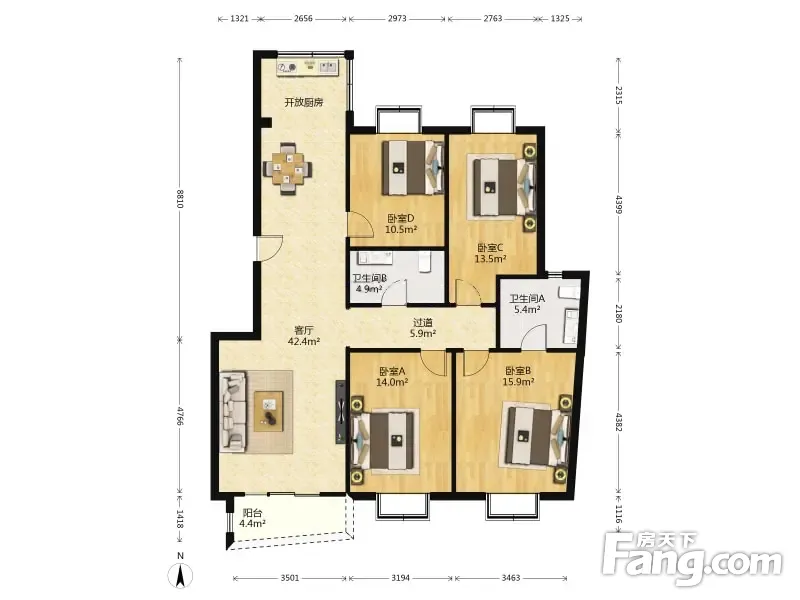房屋拥有相对宽松的尺寸,布局通透,动静分离,设计豪华
