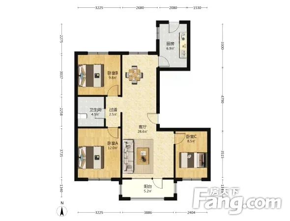 户型齐全,主打客厅朝南,主卧朝南三居