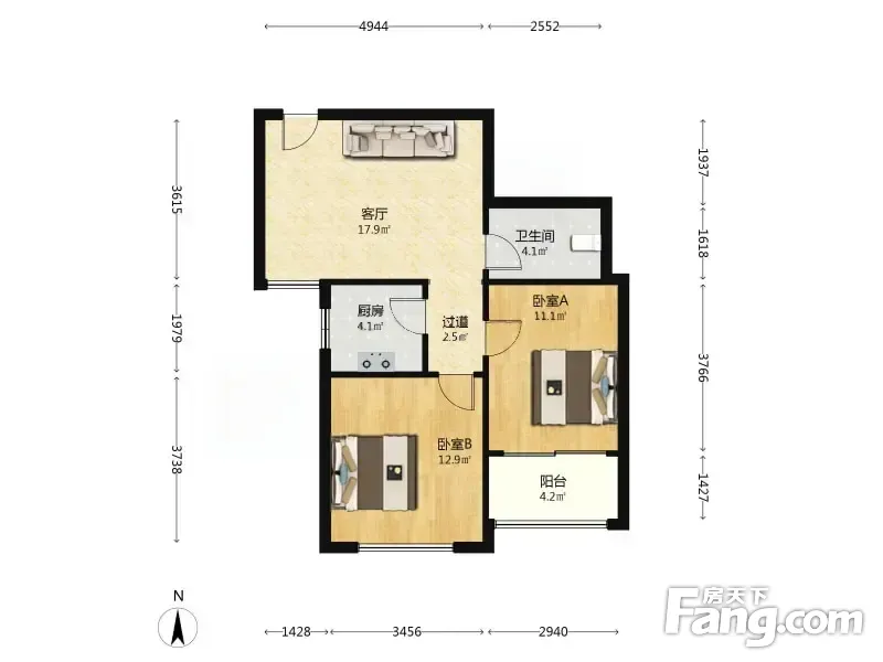 福临万家二期 2室1厅 74.31平