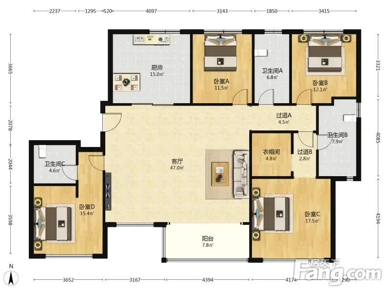 户型齐全,主打南北通透,户型方正四居