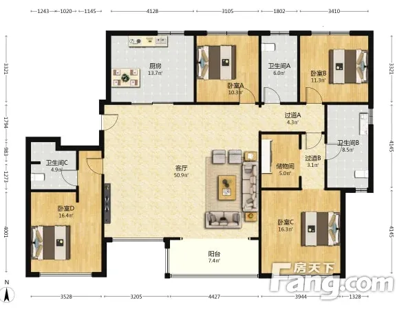 户型齐全,主打南北通透,户型方正四居