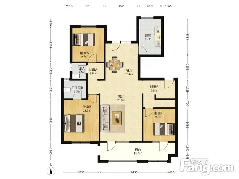 天泰阳光水岸 3室1厅 128.21平