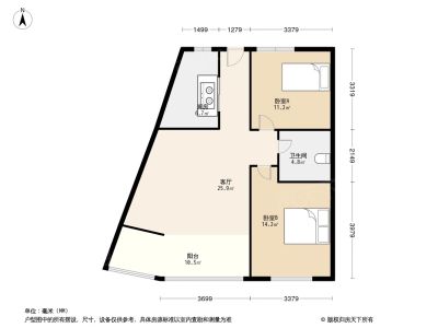 东城水岸 2室1厅 77.46平