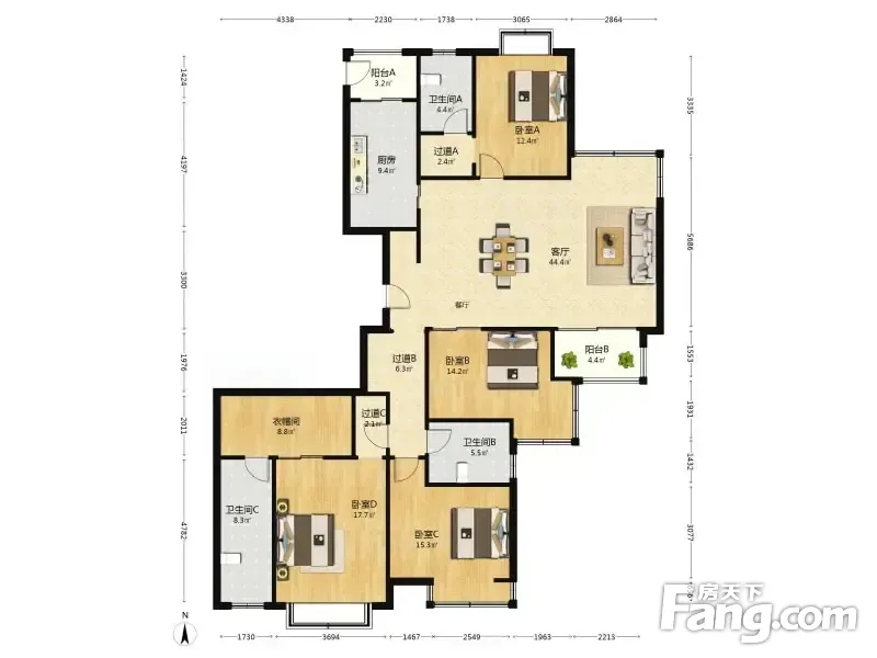 晓港名城一期 4室2厅 201.38平