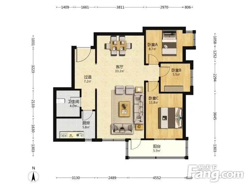风和日丽 3室1厅 112.84平
