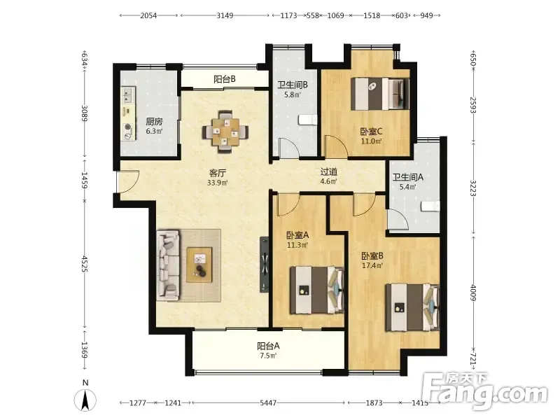 3室2厅1卫