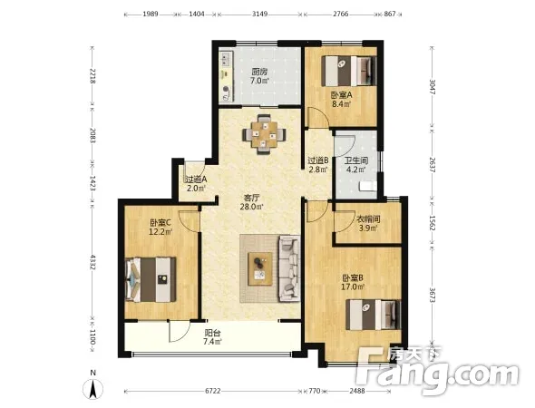 户型齐全,主打南北通透,全明格局三居