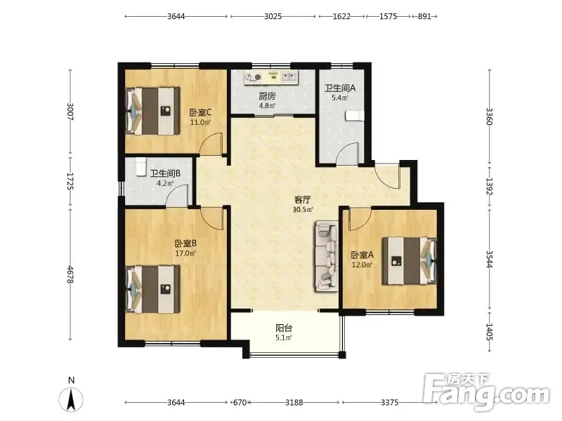 3室2厅1卫