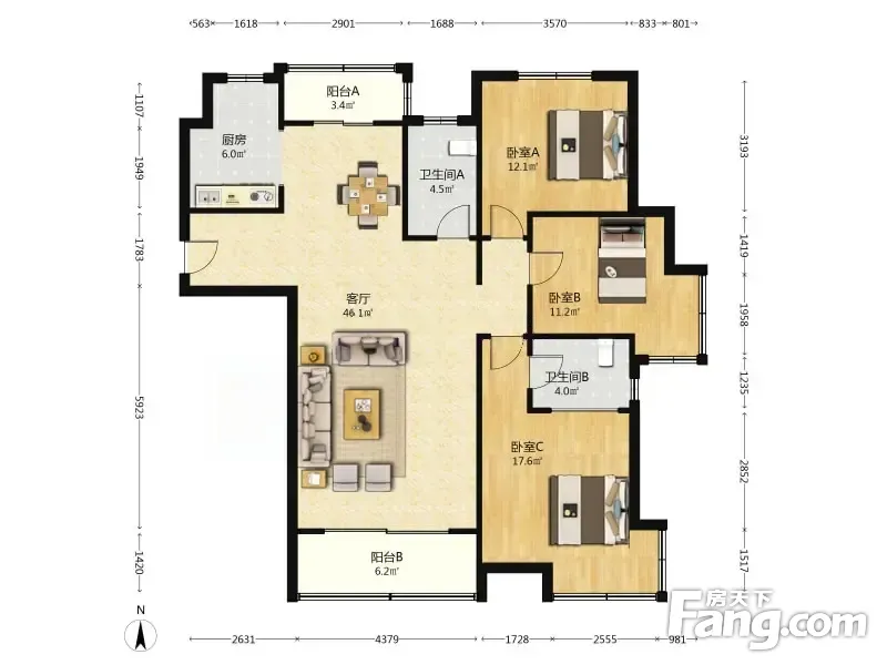 户型齐全,主打户型方正,明卫,主卧朝南三居
