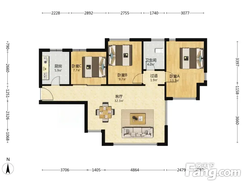 绿岛印象 3室1厅 94.53平