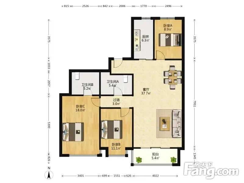 3室2厅1卫