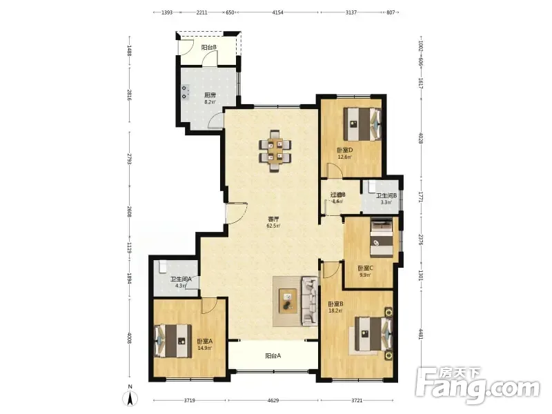 科达天意华苑 4室2厅 193.76平
