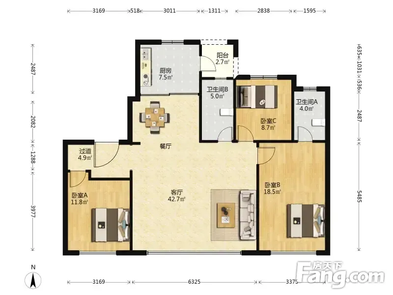 3室2厅1卫