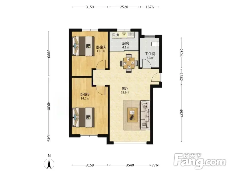 户型齐全,主打明卫,明厨,客厅朝南,全明格局,双卧朝南二居
