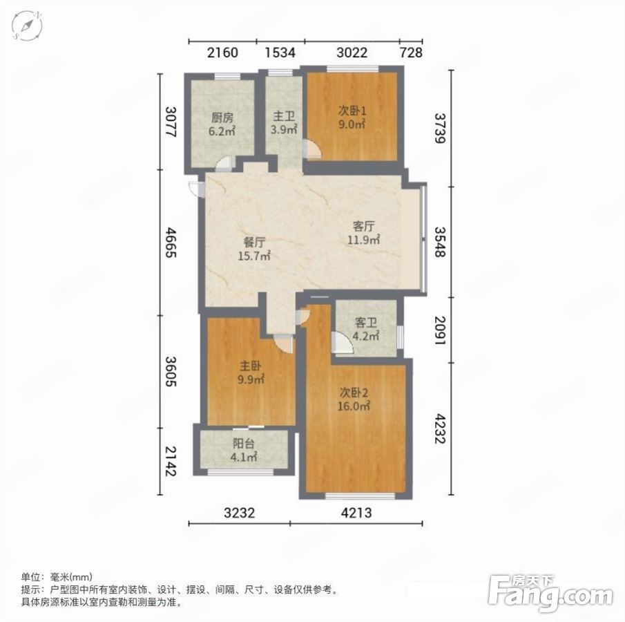 户型齐全,主打户型方正,明厨,明卫,双阳台,主卧朝南三居