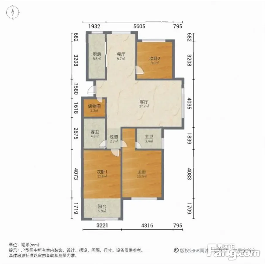 户型齐全,主打南北通透,全明格局三居
