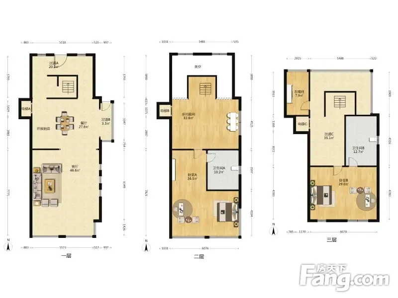 户型齐全,主打南北通透,全明格局,户型方正三居