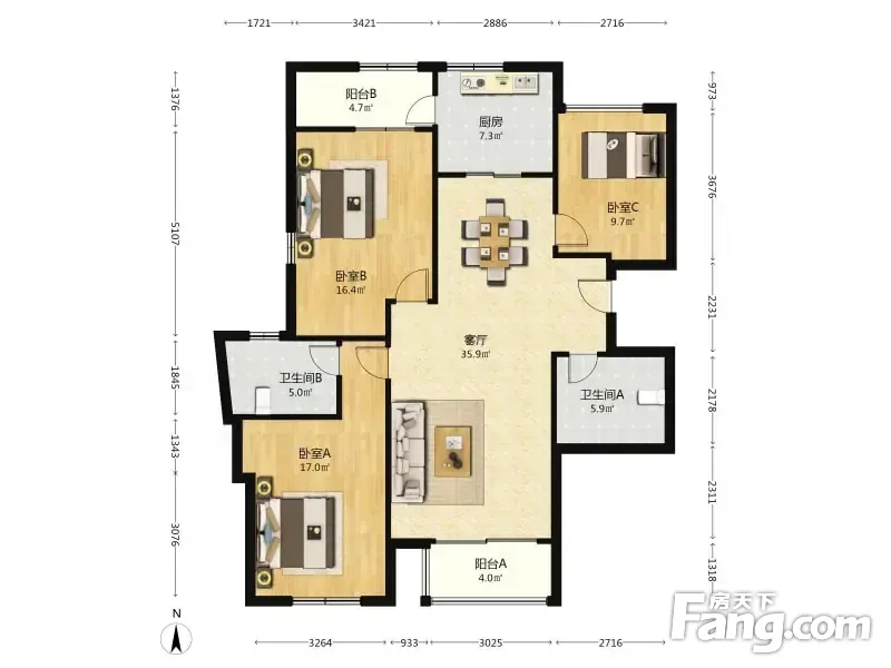 海尔东城北区 3室1厅 150.35平