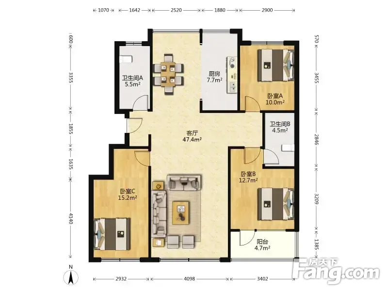 户型齐全,主打户型方正,明厨,明卫,客厅朝南三居