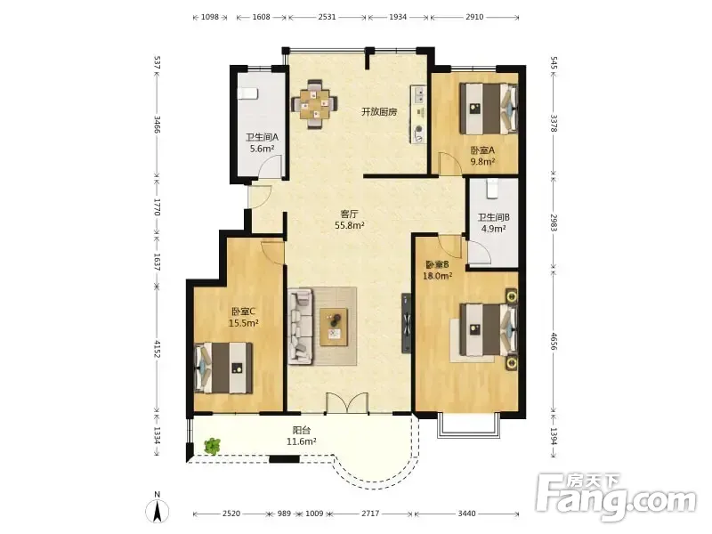 3室2厅1卫