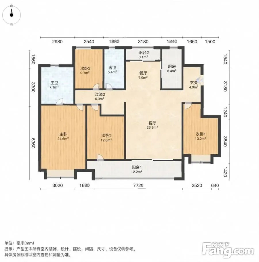 户型齐全,主打南北通透,客厅朝南三居