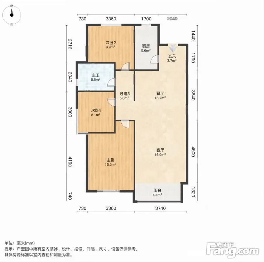户型齐全,主打南北通透,客厅朝南三居