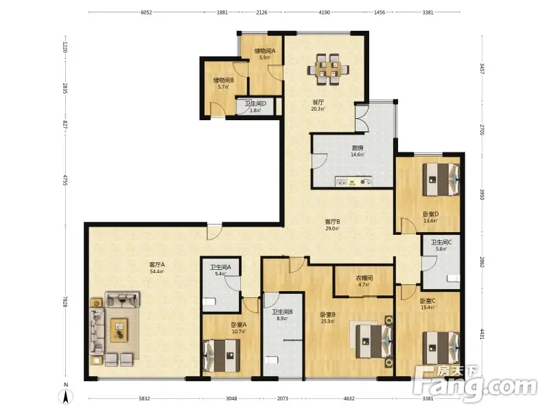 房屋拥有相对宽松的尺寸,布局通透,动静分离,设计豪华