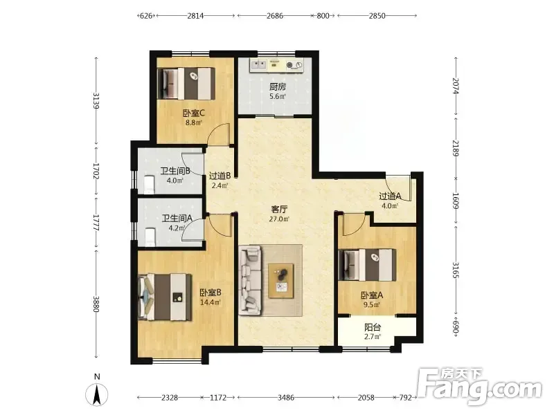 3室2厅1卫