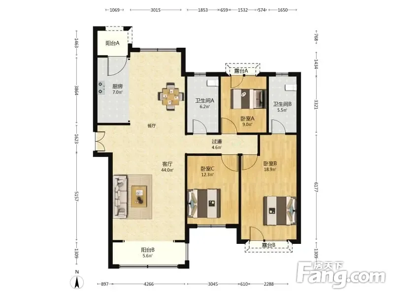 卓越天元 3室2厅 165.45平