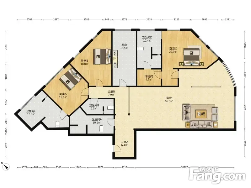 房屋拥有相对宽松的尺寸,布局通透,动静分离,设计豪华